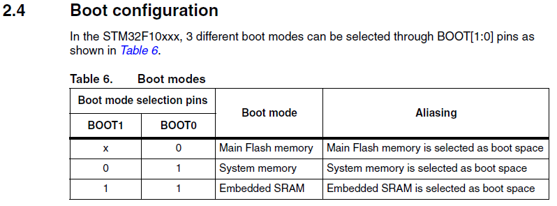 일반적으로 BOOT0을 GND에 붙여 사용하는데, BOOT0을 강제로 HIGH를 주고 전원을 넣을 경우