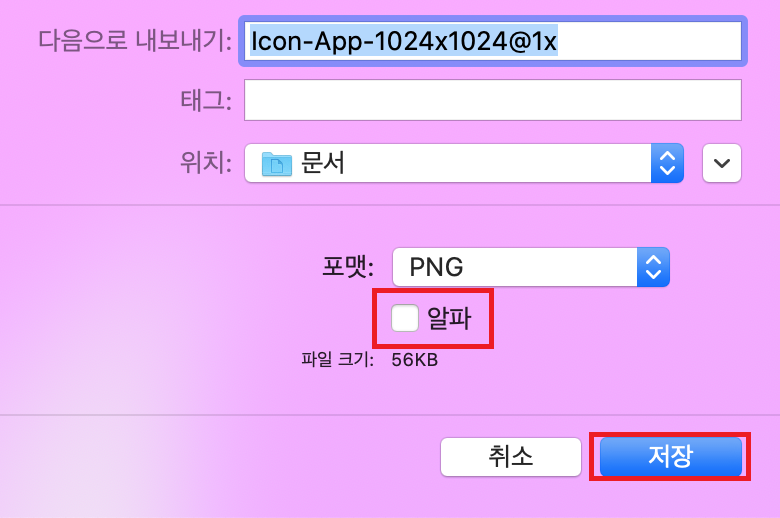 그 후 내보내기를 알파를 제거하고 진행할 수 있다.