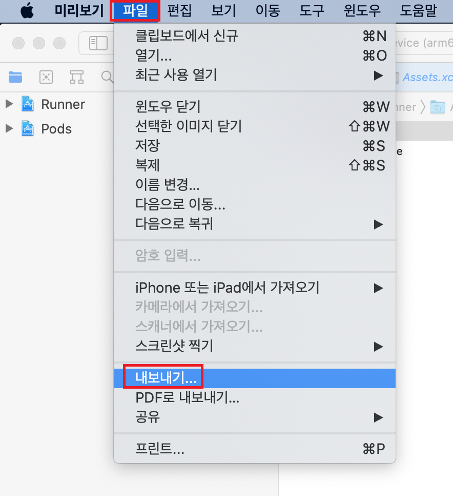 먼저 XCode의 프로젝트 폴더에서 Runner를 선택한다.