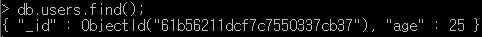 예를 들어, 위와 같은 명령이라면 name이 김길동이고 age가 22인 도큐먼트를 가져오게 된다.