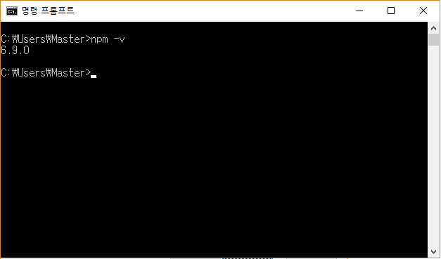 설치를 모두 완료하였다면 명령 프롬프트를 띄우고 'npm -v' 를 입력해본다.