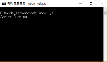 위와 같이 명령 프롬프트에서 'node index.js' 를 입력해준다.