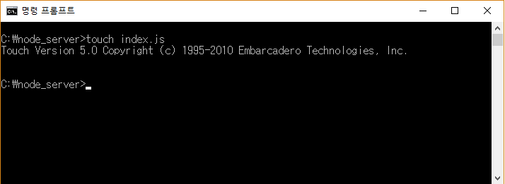 이와 같이 'touch index.js' 명령으로 간단히 빈 파일을 만들 수 있다.