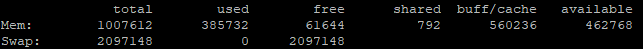 위와 같이 메모리를 확인해보면 스왑 메모리가 2기가가 잡혀있는 것을 확인할 수 있다.